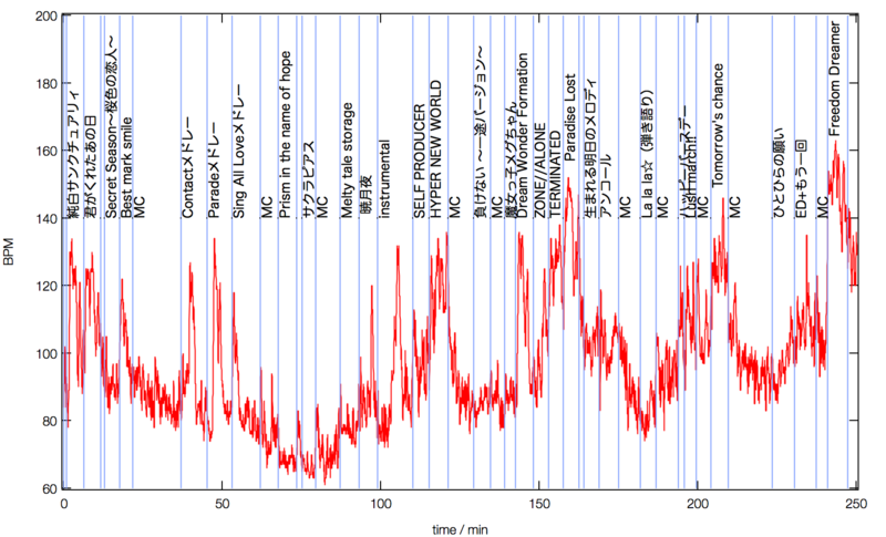 つーことで,いつものように開演後の心拍数グラフ。